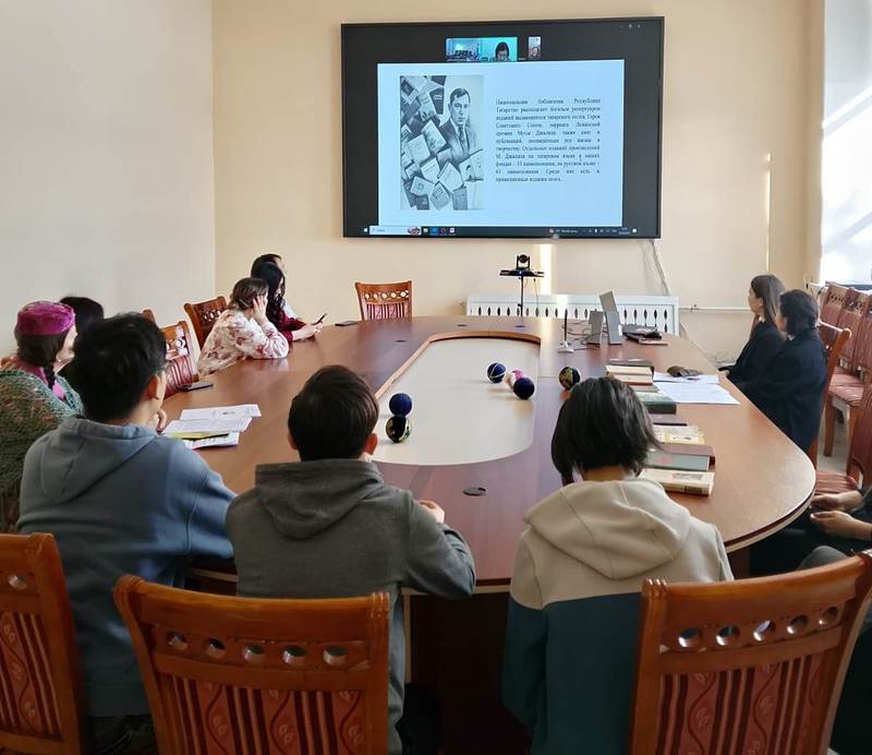 «Мәңгілік пен ерліктің ақыны: Мұса Жәлелдің кітаптары Татарстан Республикасы Ұлттық кітапханасында» атты баяндама-презентациямен татар және өлкетану әдебиеті бөлімінің меңгерушісі Зимаголова Г.Ш. сөз сөйледі. Ол Мұса Жәлелдің көзі тірісінде жарық көрген латын және кирилл әліпбиіндегі сирек басылымдары, оның орыс тіліне аударылған еңбектері, сондай-ақ шығармаларының әлемнің 60-тан астам тіліне тәржімаланғаны жөнінде айтты. Ақынның татар, ағылшын, неміс, чех, чуваш, өзбек және басқа да тілдердегі шығармалары таныстырылды.