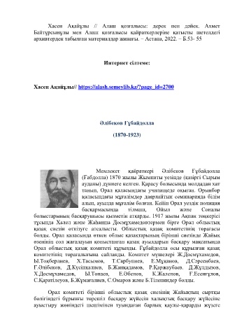 Хасен Ақайұлы // Алаш қозғалысы: дерек пен дәйек. Ахмет