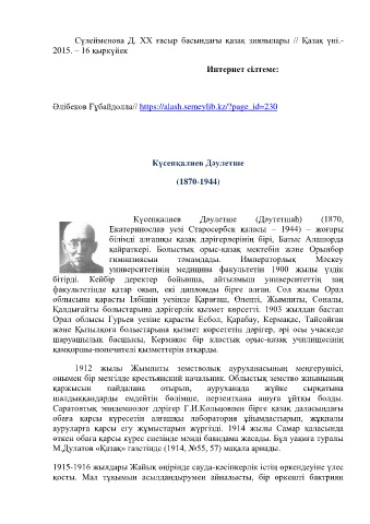 Сүлейменова Д. XX ғасыр басындағы қазақ зиялылары // Қазақ үні.-