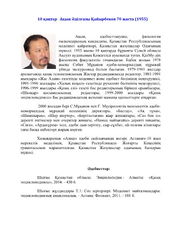 энциклопедиясы» Бас редакциясының жетекші маманы қызметтерін атқарған.