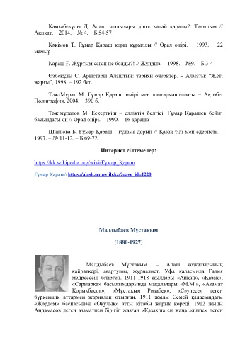 Шканова Б. Ғұмар Қараш – ғұлама дарын // Қазақ тілі мен әдебиеті. –