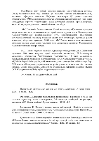 университетінің ұстазы, жаратылыстану ғылымдарының академигі Панин М.С.