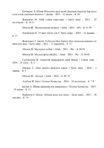 Әбенов Ш. Мусаннифтің зайыбы // Абай. - 2015. - №1. - Б. 80-85