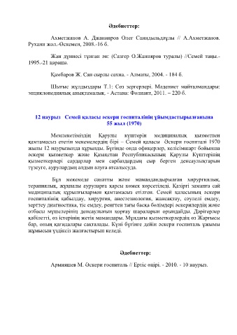 Армияшев М. Әскери госпиталь // Ертіс өңірі. - 2010. - 10 наурыз.