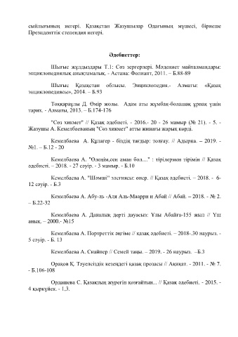 Кемелбаева А. Портреттік әңгіме // қазақ әдебиеті. – 2018-.30 наурыз. -