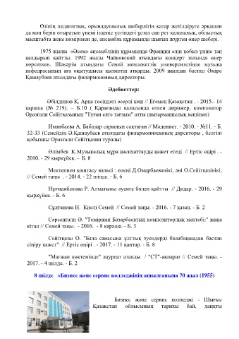 көрсеткен. Шәкәрім атындағы Семей мемлекеттік университетінде музыка