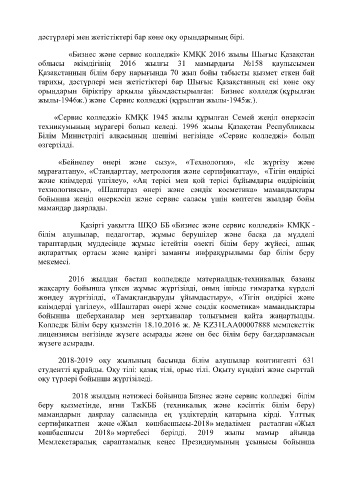 Қазіргі уақытта ШҚО ББ «Бизнес және сервис колледжі» КМҚК -
