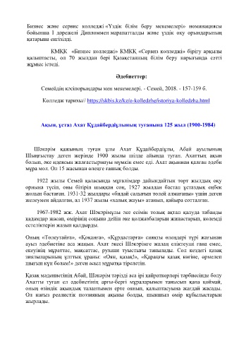 Семейдің кәсіпорындары мен мекемелері. - Семей, 2018. - 157-159 б.