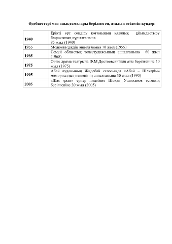Әдебиеттері мен анықтамалары берілмеген, аталып өтілетін күндер: