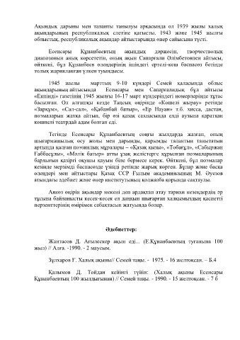 ақындарының республикалық слетіне қатысты. 1943 және 1945 жылғы