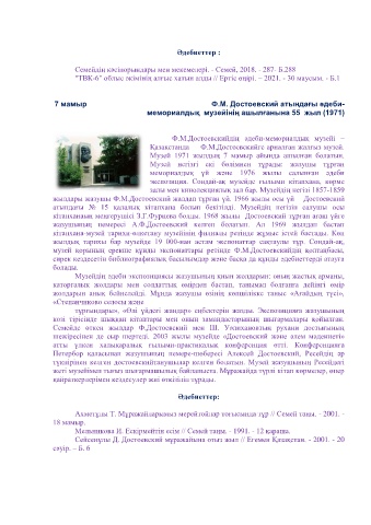 Сейсенұлы Д. Достоевский мұражайына отыз жыл // Егемен Қазақстан. - 2001. - 20