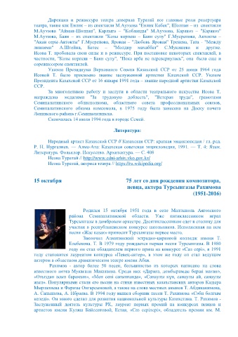 келеді». Он много сделал для развития национальной культуры Казахстана. Т. Рахимов -